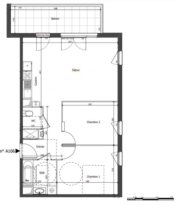 271 500€ Appt. T3 60.51m2 0-RDC