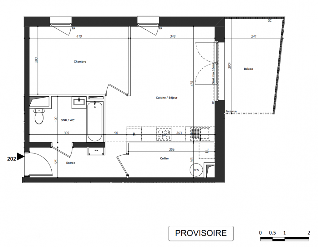 264 500€ Appt. T2 45.1m2 0-RDC