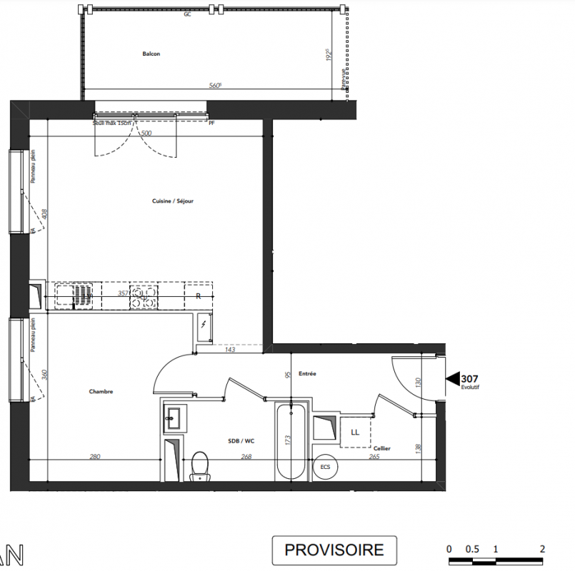 280 900€ Appt. T2 46.7m2 1er