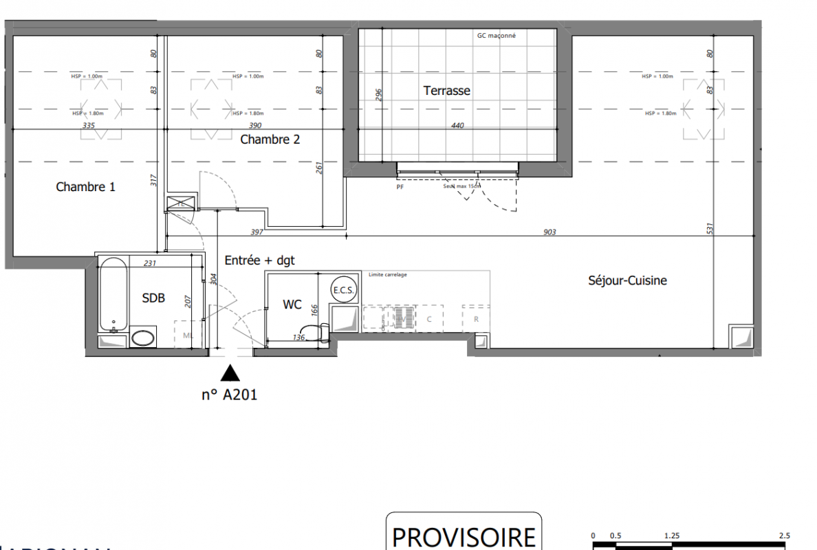 282 900€ Appt. T3 61.55m2 0-RDC