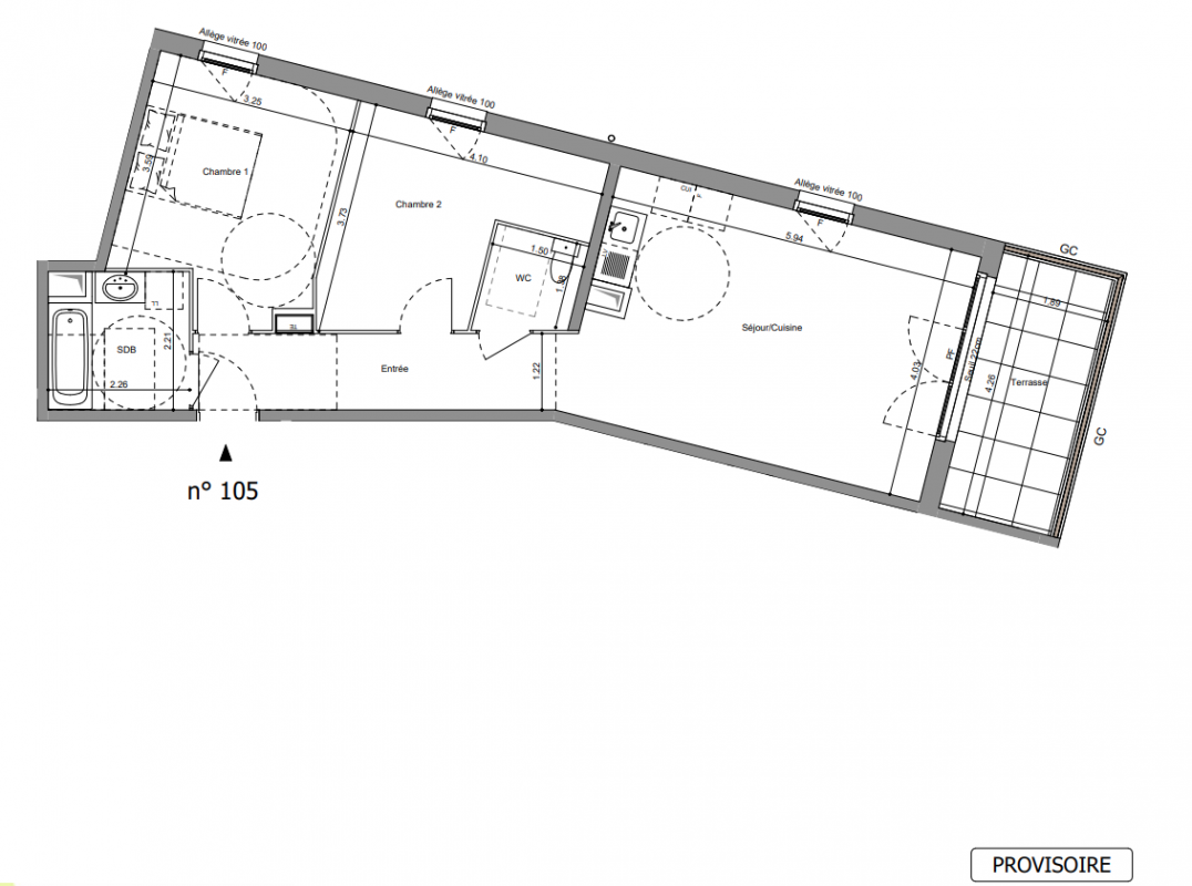 241 300€ Appt. T3 63.35m2 0-RDC