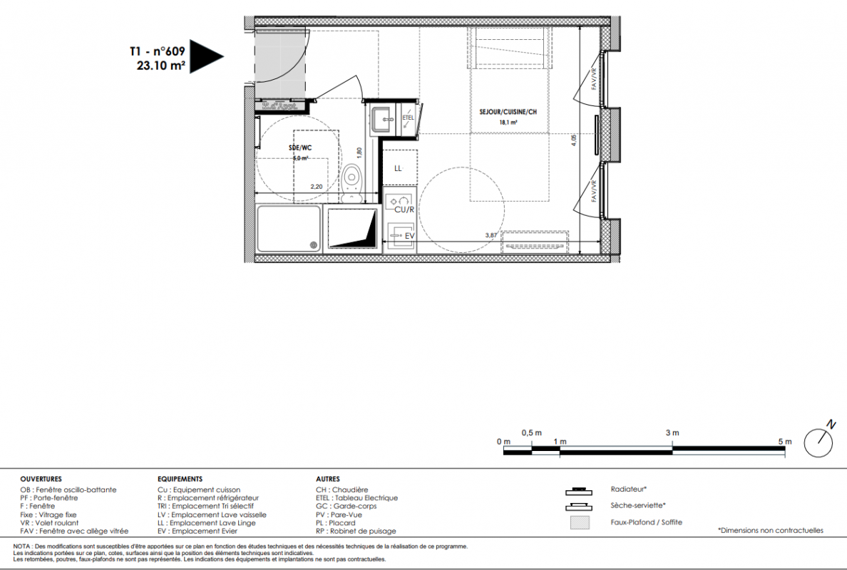 116 000€ Appt. Studio 23.1m2 3ème