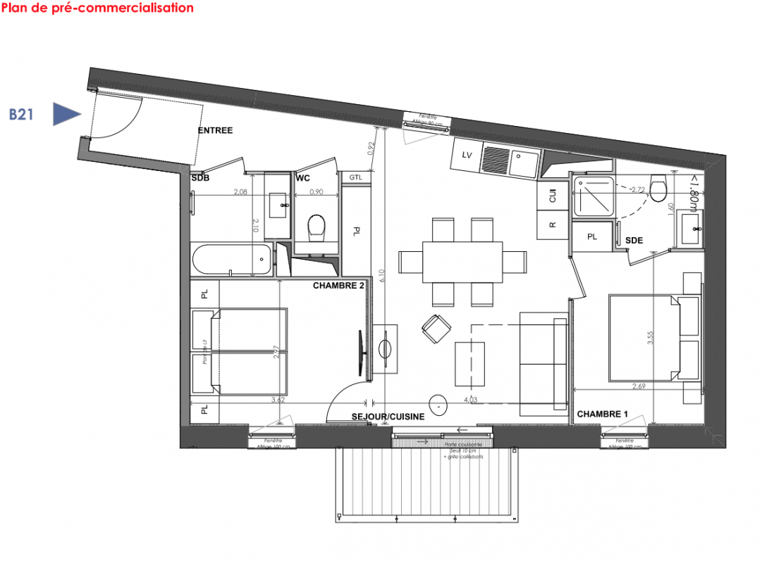 569 300€ Appt. T3 63.78m2 2ème
