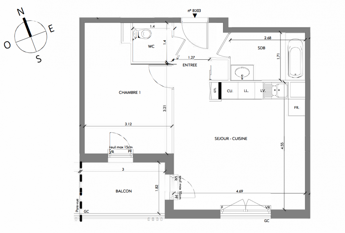163 500€ Appt. T2 40.15m2 2ème