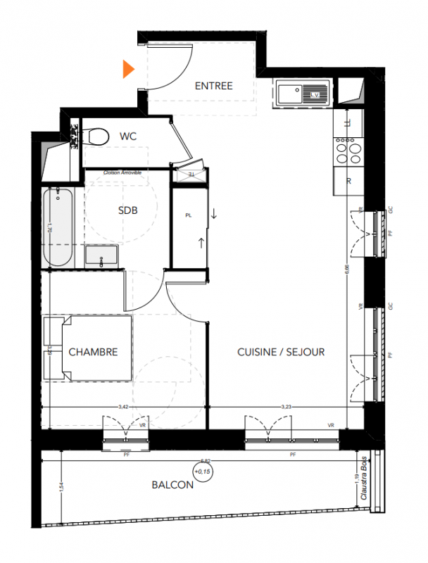199 000€ Appt. T2 44.05m2 1er