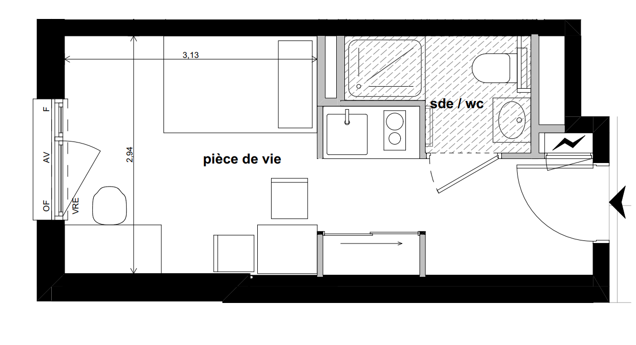 142 000€ Appt. Studio 19.15m2 1er