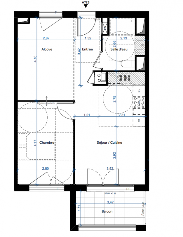 231 000€ Appt. T2 43.47m2 1er