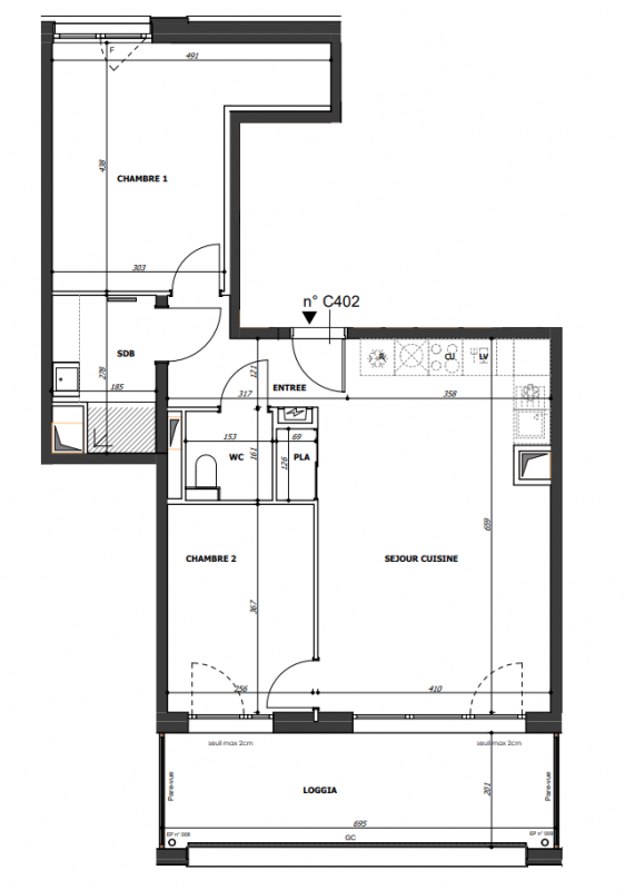 362 100€ Appt. T3 70.1m2 2ème
