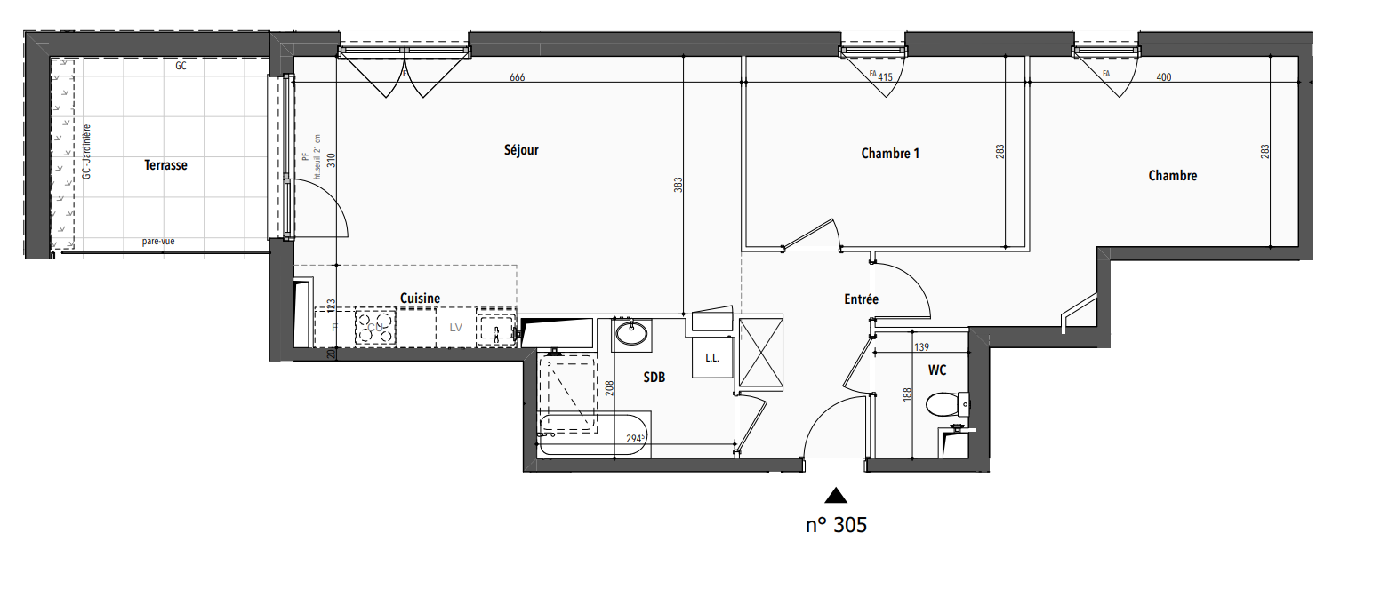 296 900€ Appt. T3 59.49m2 0-RDC