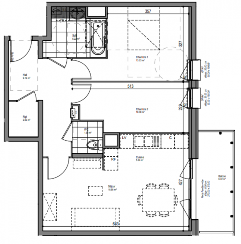 | Voir | Disponible | 241 300€ | C106 | Appt. | T3 | 65.45m2 | 1er | Disponible | 241 300€ | Voir |