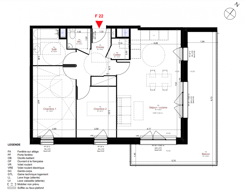 233 626€ Appt. T3 73.28m2