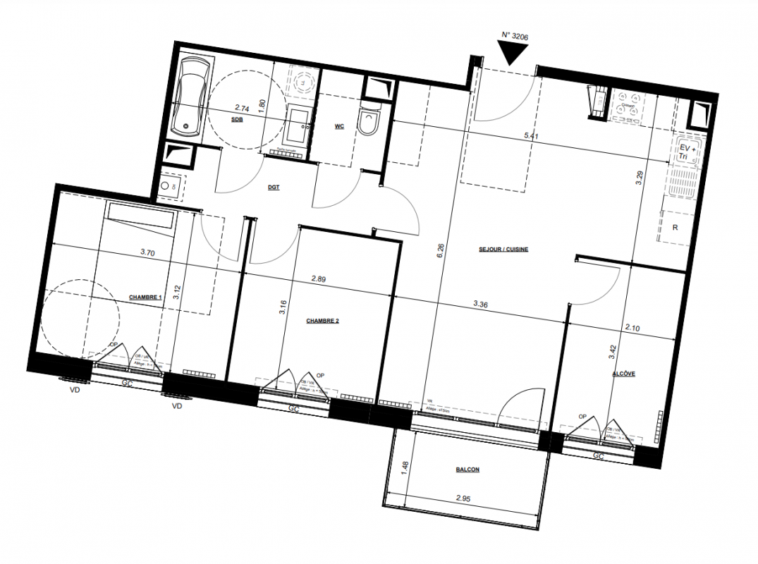 219 526€ Appt. T3 58.69m2 2ème