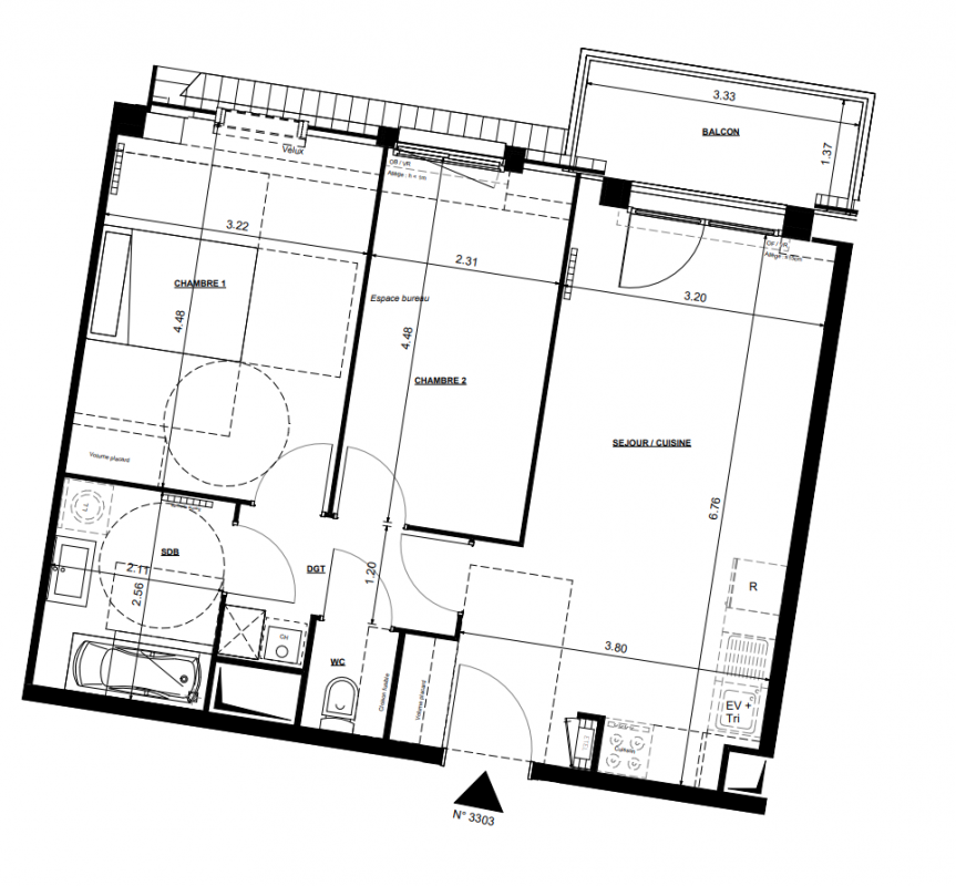 212 701€ Appt. T3 59.02m2