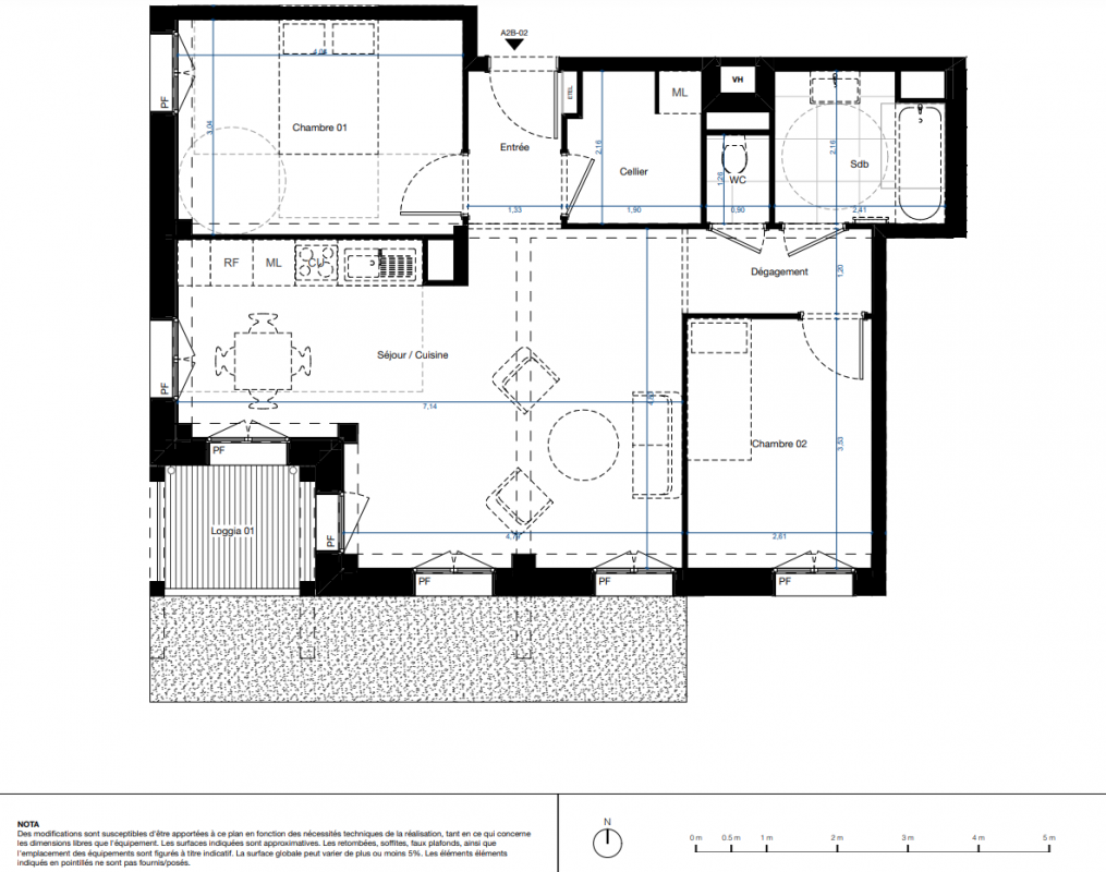 *Pour les logements du bâtiment T2 : store en toile
