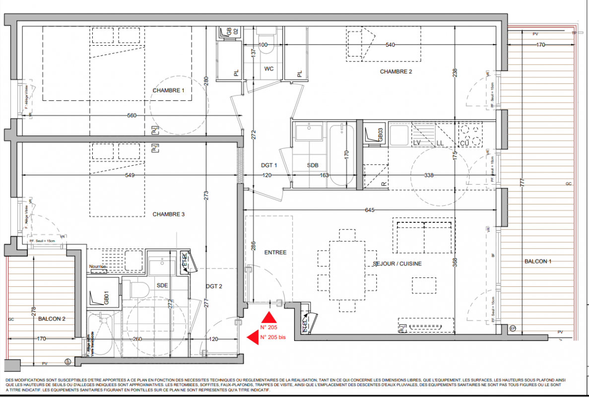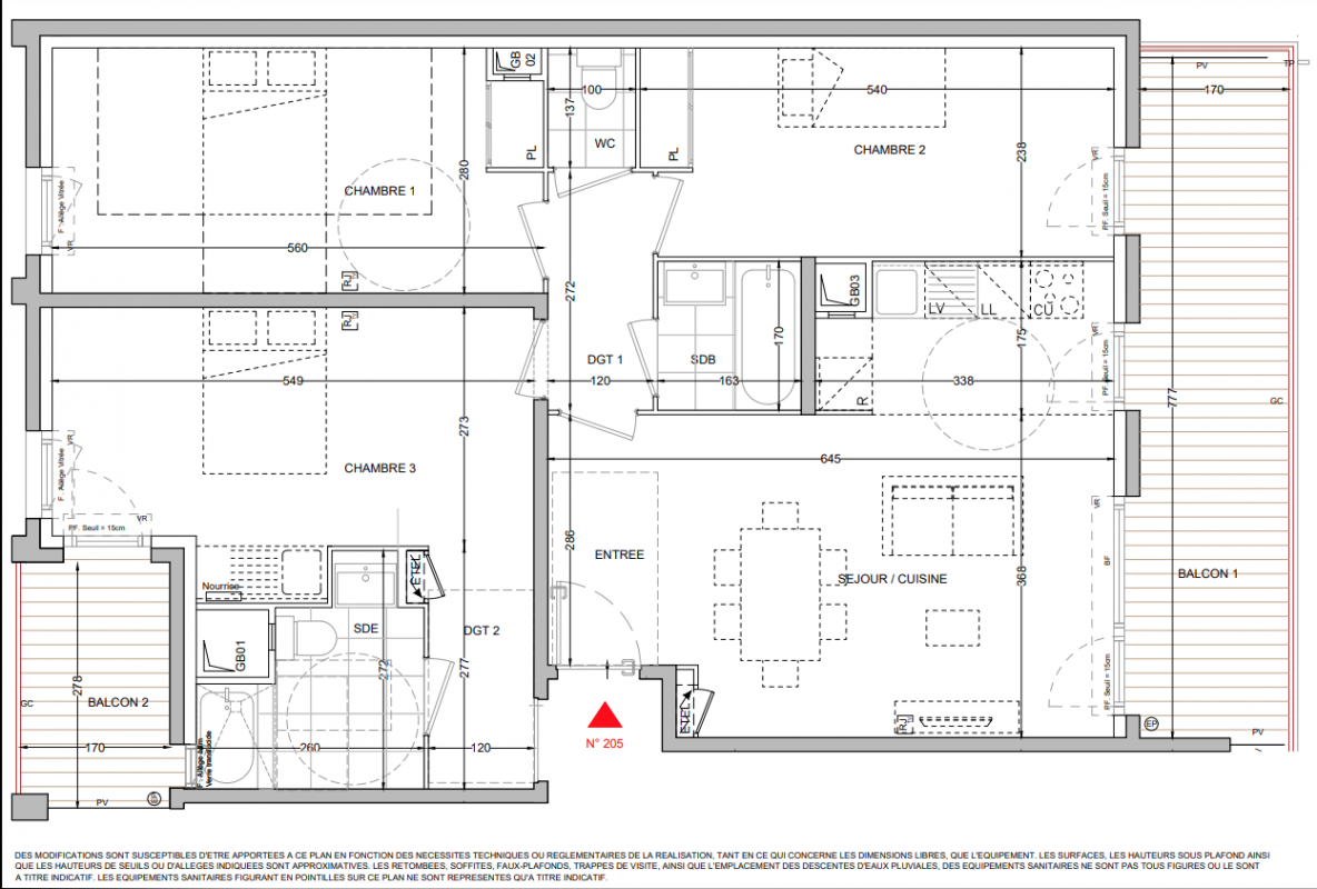 Derniers 2 pièces d'environ 45 m² avec balcon.Appartement 3 pièces d'environ 60 m² avec balcon d'au moins 10 m² et parking pour tous !Appartements 4 pièces EVOLUVIE (concept T3 + T1 indépendant) de 87 m² avec balcon de 13 m² et parking pour tous !
