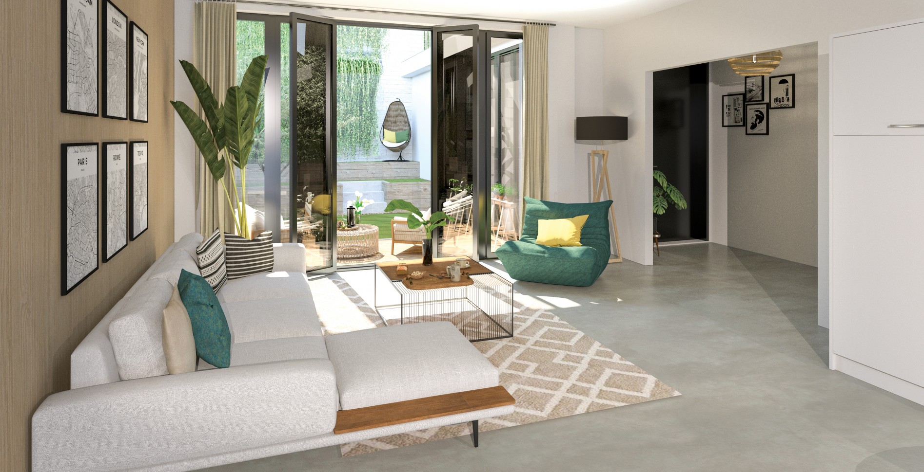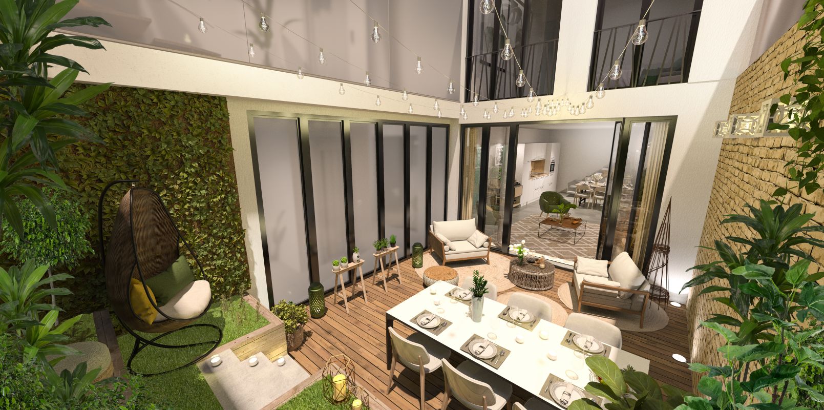 Deux terrasses accessibles ; une pour le triplex derniers niveaux, et une pour le triplex jardin