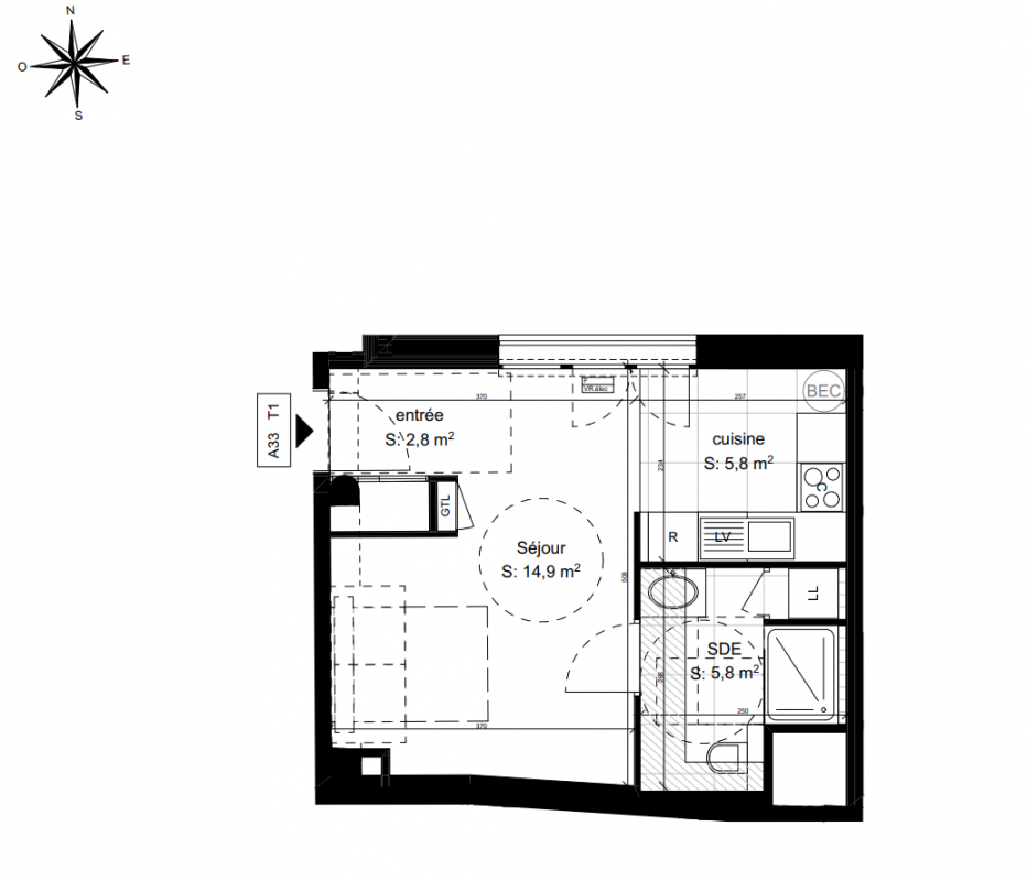 456 000€ Appt. Studio 30.3m2 3ème