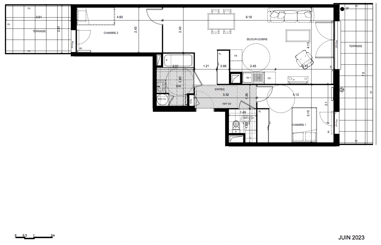 Accéder à la maquette 3D de Square FochSur l’avenue du Maréchal Foch, à l’angle des rues Léon leRoyer et Paul Prunet, la résidence Square Foch intègreun ensemble venant moderniser l'adresse : salle de sport, workingcafé, hôtel 3 étoiles, espaces de coliving, commerces au pied du programme et crèche créent une véritable vie de quartier contribue à dessiner le nouveau visage du centre ville.La résidence a un style architectural moderne et épuré. Elle propose des appartements allant du studio au 5 pièces qui profitent d’une ouverture surl’extérieur avec balcon, jardin en rez-de-chaussée, ou terrasse plein ciel.Des villas sur le toit offrent des espaces exceptionnels. RESIDENCEPerformance énergétique : les logements répondront à la RE 2020Diversité des typologies pour favoriser une mixité des usagesExtérieur pour chaque logement : balcons de taille standard, larges terrasses (moyenne à 25m2, certaines > 75m2)1 à 2 place(s) de stationnement par appartementENVIRONNEMENTSquare Foch est idéalement située, notamment pour les familles, avec les écoles et le collège voisinA quelques pas du programmeServices de proximité => salle de sport, café Commerces du quotidien => boulangerie, supermarché, banqueRevêtement linoléum pour les séjours Carrelage pour les salles d’eau et les cuisines Salles de bain équipées d’un meuble vasqueavec sous-plan vasque avec tiroirs, un miroiret une réglette LED Sèche-serviette électrique Fenêtres et portes-fenêtres en PVC, ouvrantes àla française, oscillo-battantes avec parties fixes (double vitrage)Vitrage en verre granité ou translucide dansles salles d’eau Volets roulants PVC à commande manuelle• Porte anti-effraction, serrure 3 points A2P* Accès à l’entrée par vigik et vidéophoneBornes de recharge électriqueA 10 min à pied du "pôle Luxembourg" accueillant marché et commerces de bouche, médiathèque, IUT de MeauxA 10 min à pied de la plage de Meaux proposant des activités et sports nautiquesA 10 min à pied du parc du Pâtis pour les balades, jogging, moment de détente en familleA 17 min à pied de la gare de Meaux / 6min en vélo