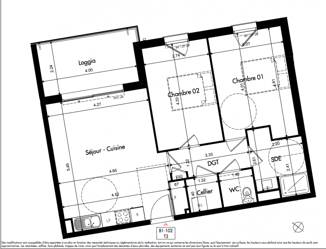 221 000€ Appt. T3 63.02m2 1er