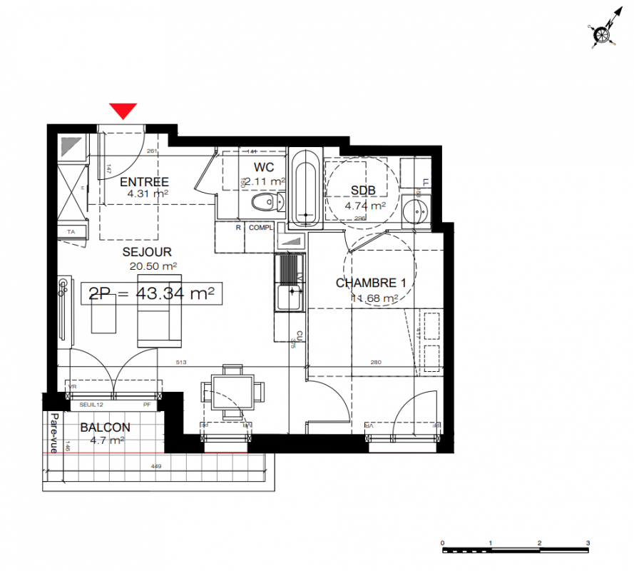 Découvrez nos 63 appartements, du 2 au 4 pièces, tous accompagnés d'une place de parking et d'un local à vélos, pour un confort de vie optimal.