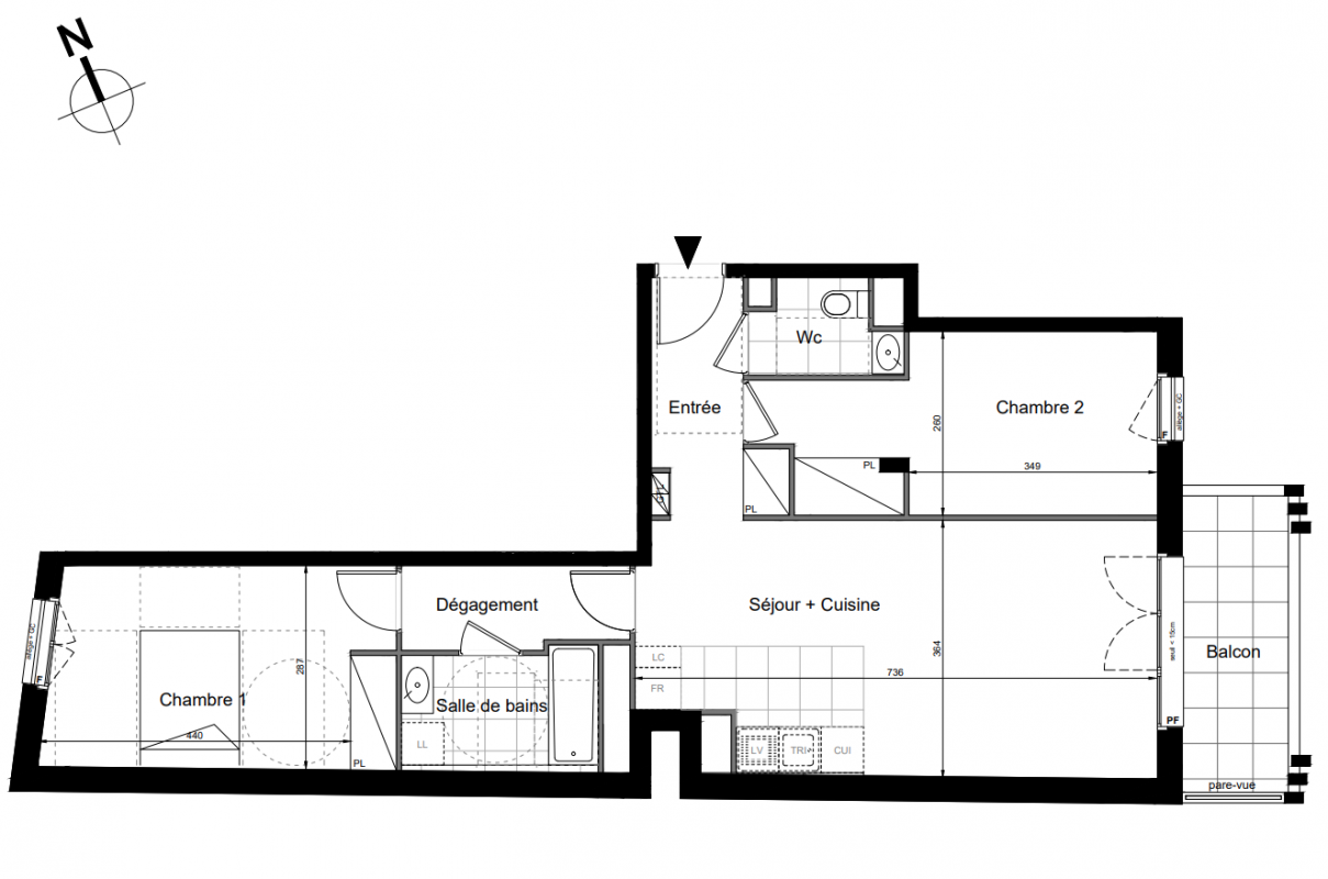 297 750€ Appt. T3 60.8m2 2ème