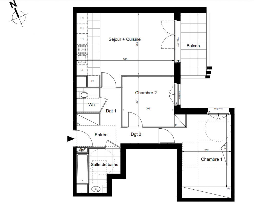 332 750€ Appt. T3 63.3m2 4ème
