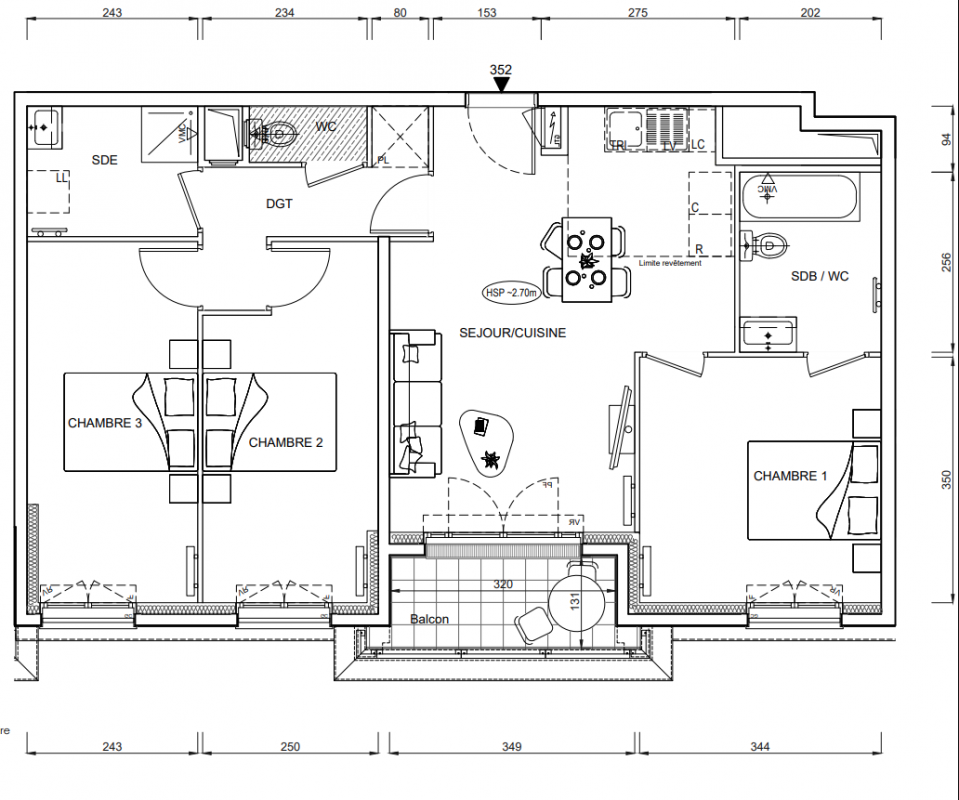 352 607€ Appt. T4 76.42m2 4ème