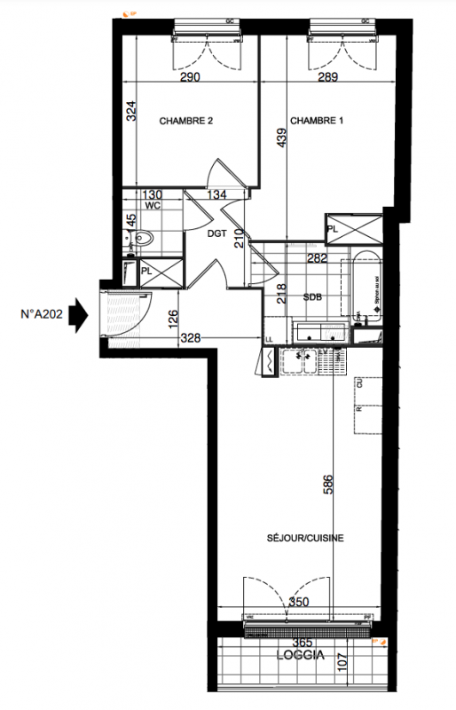 376 999€ Appt. T3 59m2 2ème