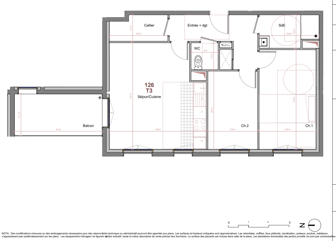 298 783€ Appt. T3 63.4m2 0-RDC