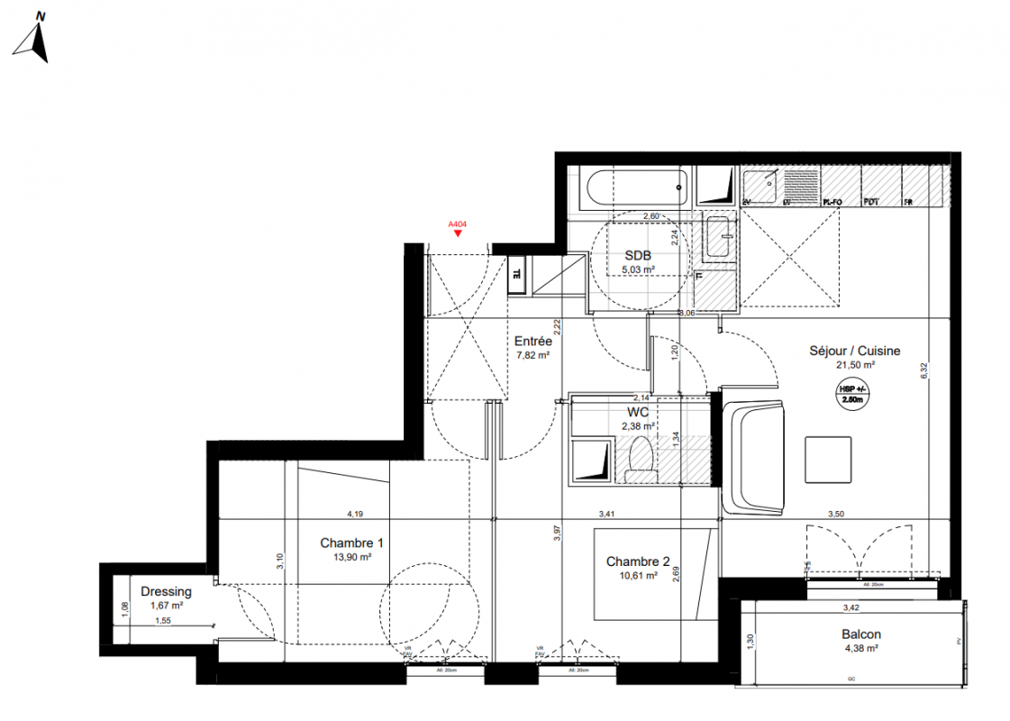 271 848€ Appt. T3 58.42m2 2ème