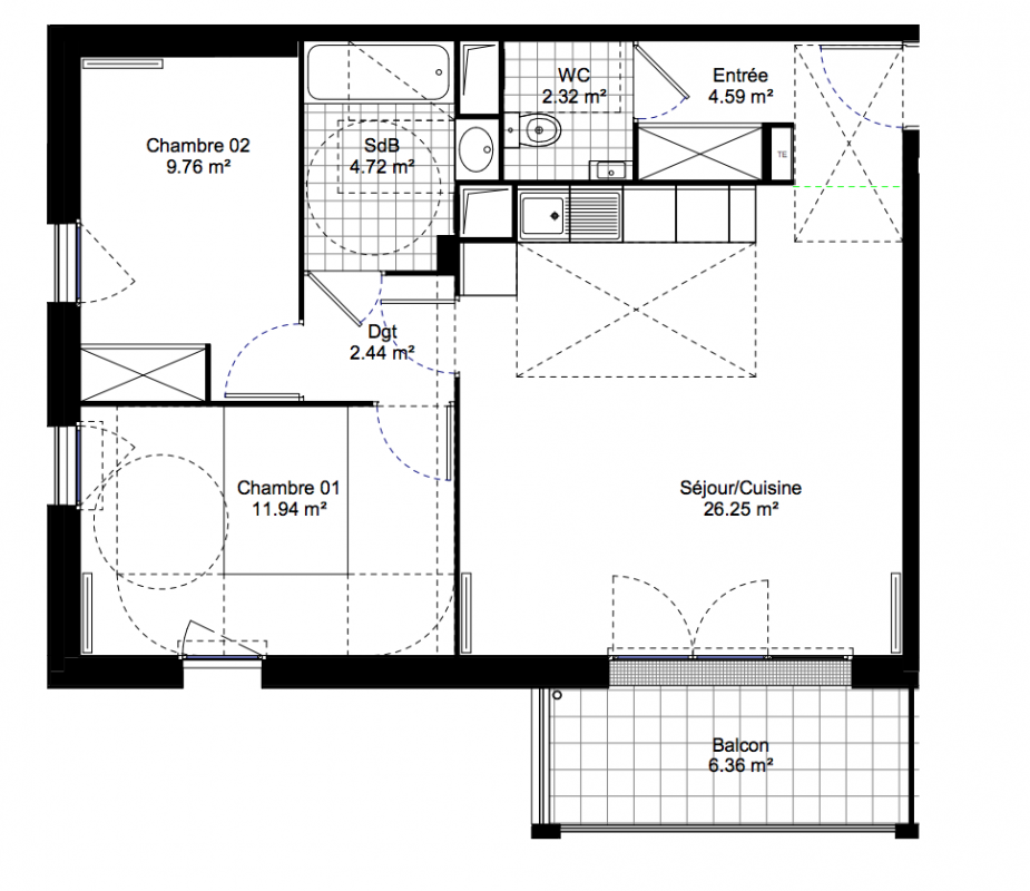 267 500€ Appt. T3 61.3m2 1er