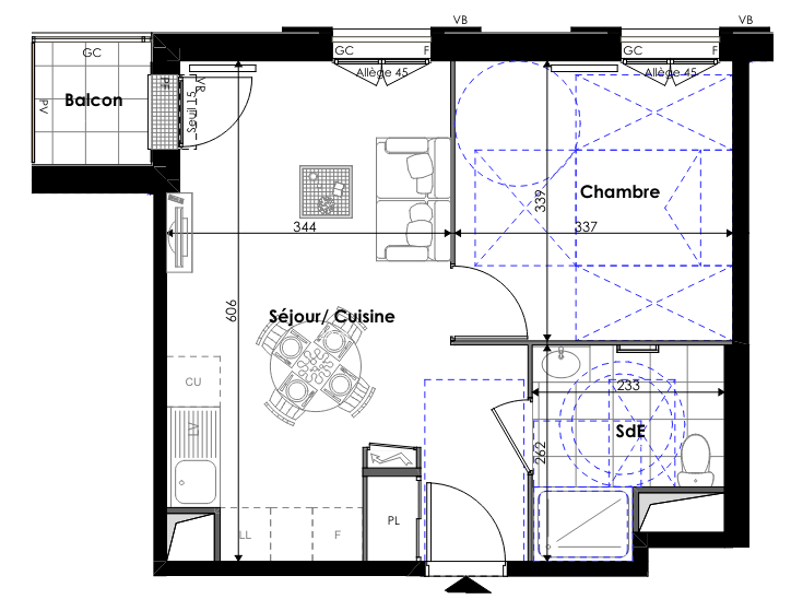 210 000€ Appt. T2 43.9m2 1er