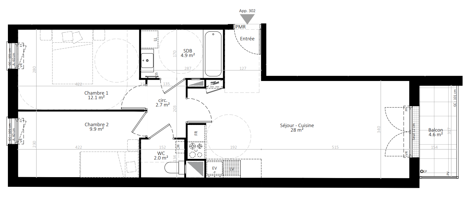 277 422€ Appt. T3 57.4m2 2ème