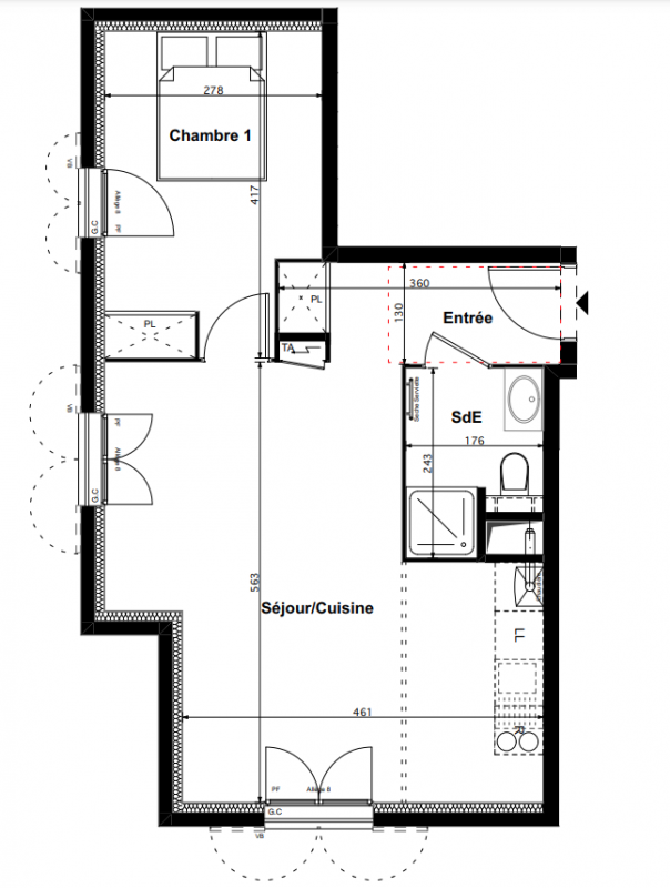 274 000€ Appt. T2 43.9m2 1er