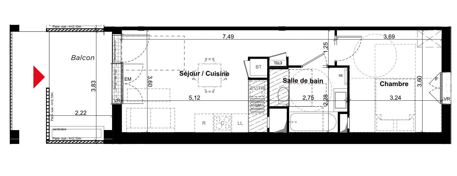 169 900€ Appt. - 38.09m2 0-RDC
