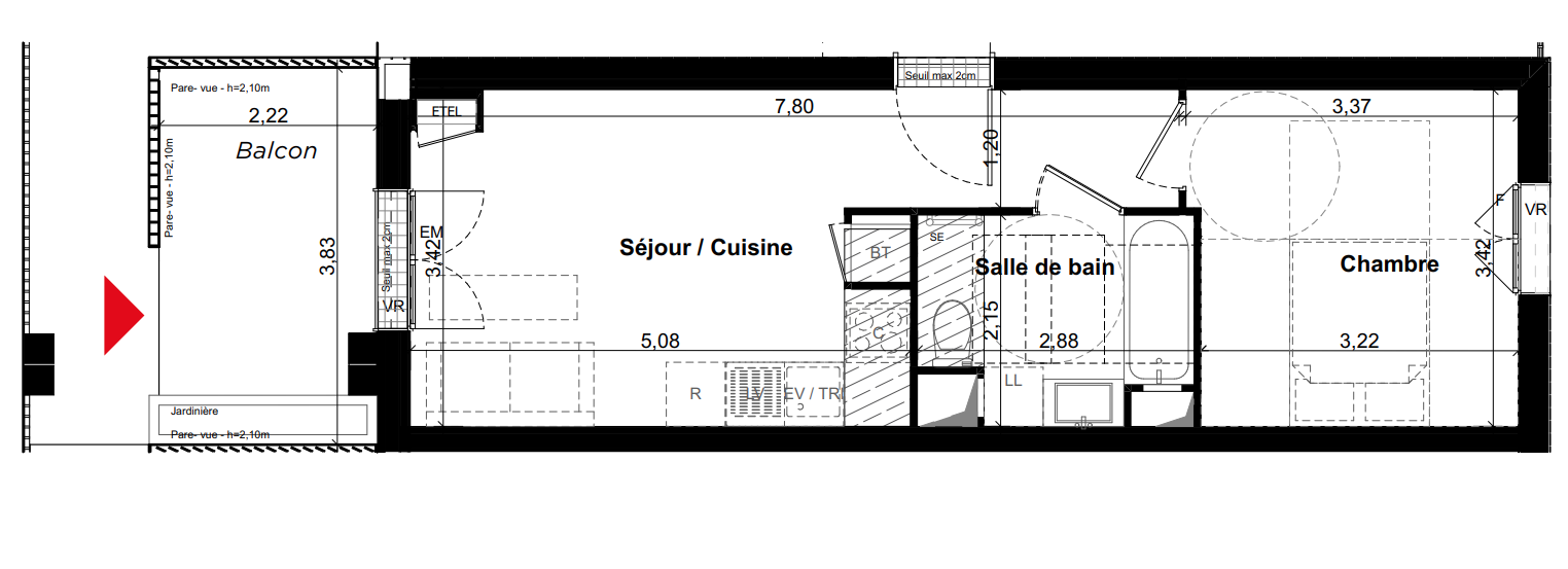 | Voir | Optionné | 164 900€ | B05 | Appt. | T2 | 38.09m2 | 0-RDC | Optionné Mais pas encore vendu 😉 | 164 900€ | Voir |