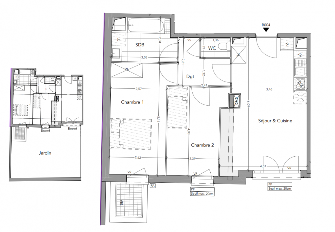 | Voir | Disponible | 231 000€ | B003 | Appt. | T3 | 53.9m2 | 0-RDC | Disponible | 231 000€ | Voir |