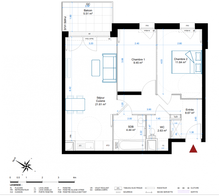 223 999€ Appt. T3 58m2 3ème