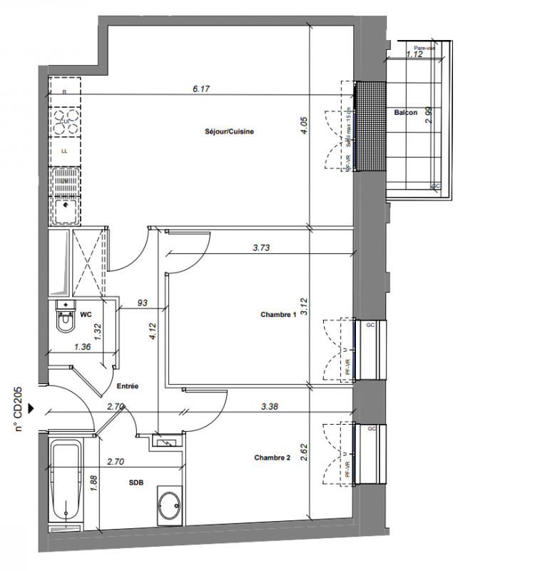 376 100€ Appt. T3 70.33m2 0-RDC