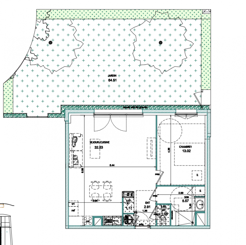 412 000€ Appt. T2 50.28m2 0-RDC
