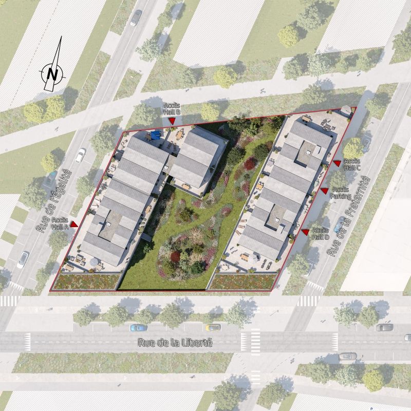 Les toitures du dernier niveau prennent la forme de maisons accolées, proposant de superbes appartements T4 en duplex, lumineux et confortables.