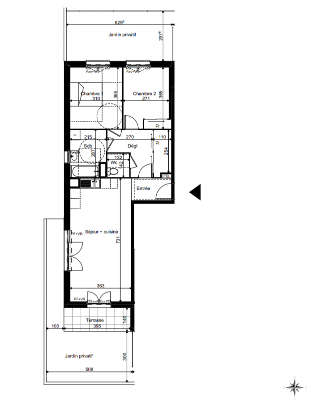 243 900€ Appt. T3 64.17m2 0-RDC