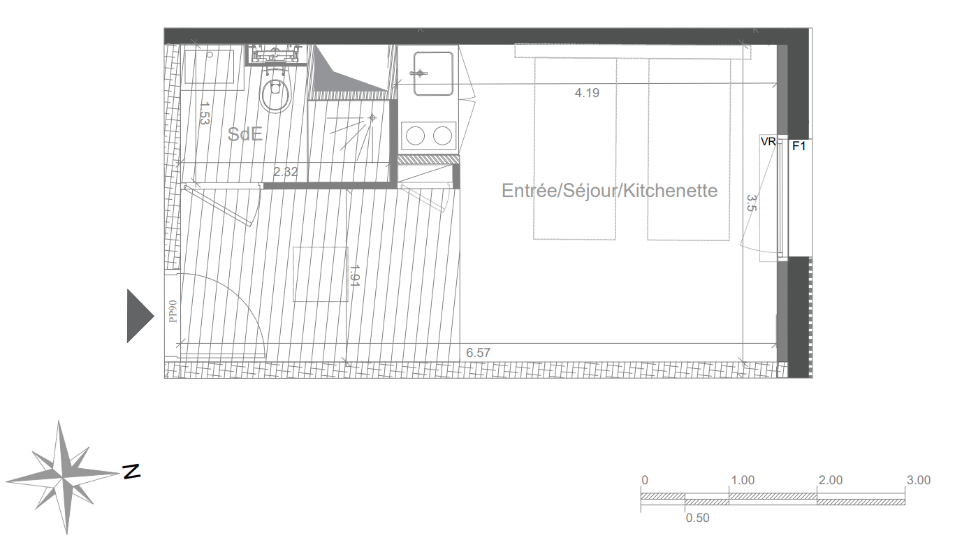 163 418€ Appt. Studio 30.08m2 0-RDC