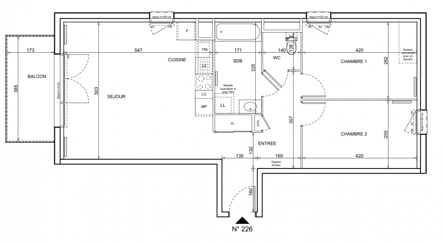 | Voir | Disponible | 232 000€ | 225 | Appt. | T3 | 64m2 | 2ème | Disponible | 232 000€ | Voir |