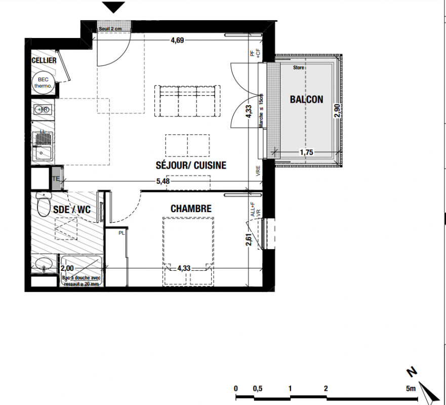 155 900€ Appt. T2 45.3m2 0-RDC