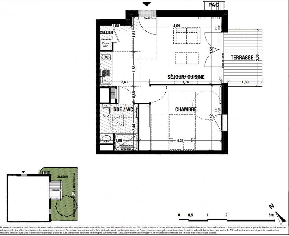 Un placard aménagé pour les T2, deux placards aménagés pour les T3.