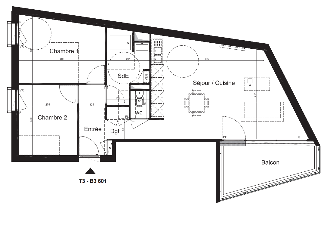 256 000€ Appt. T3 63.18m2 1er