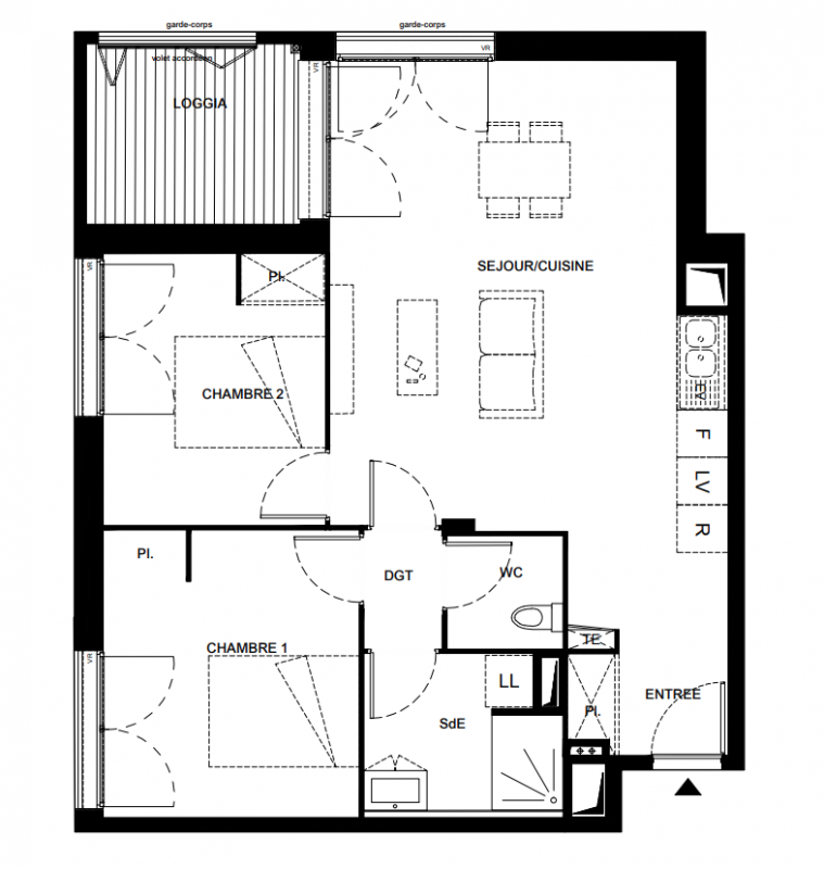 265 900€ Appt. T3 58.2m2 0-RDC