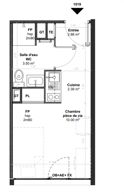 103 300€ Appt. Studio 18m2 0-RDC