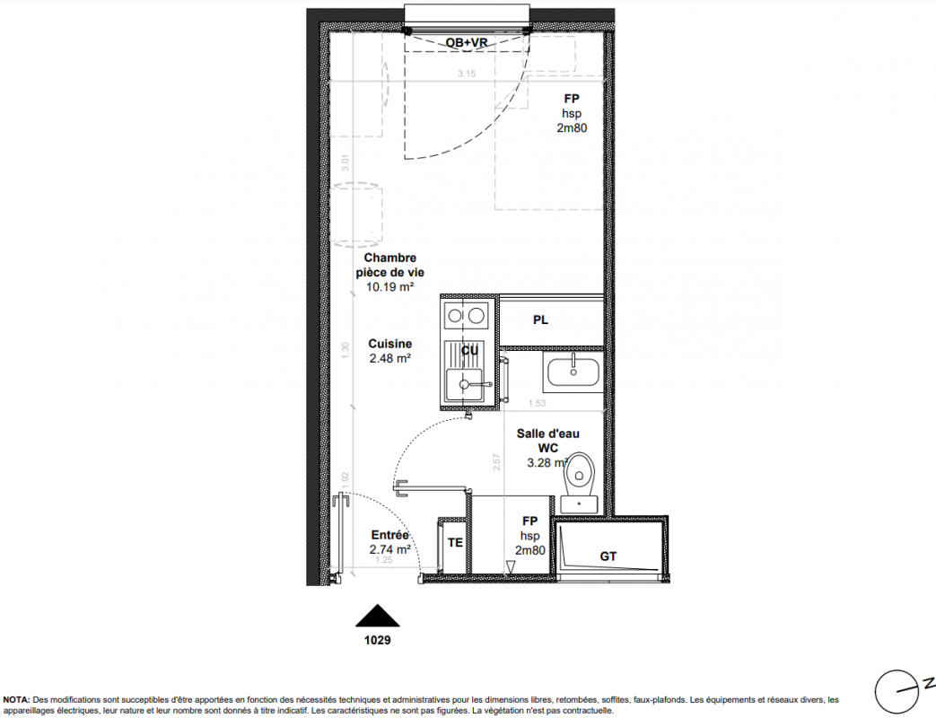 107 700€ Appt. Studio 18m2 0-RDC